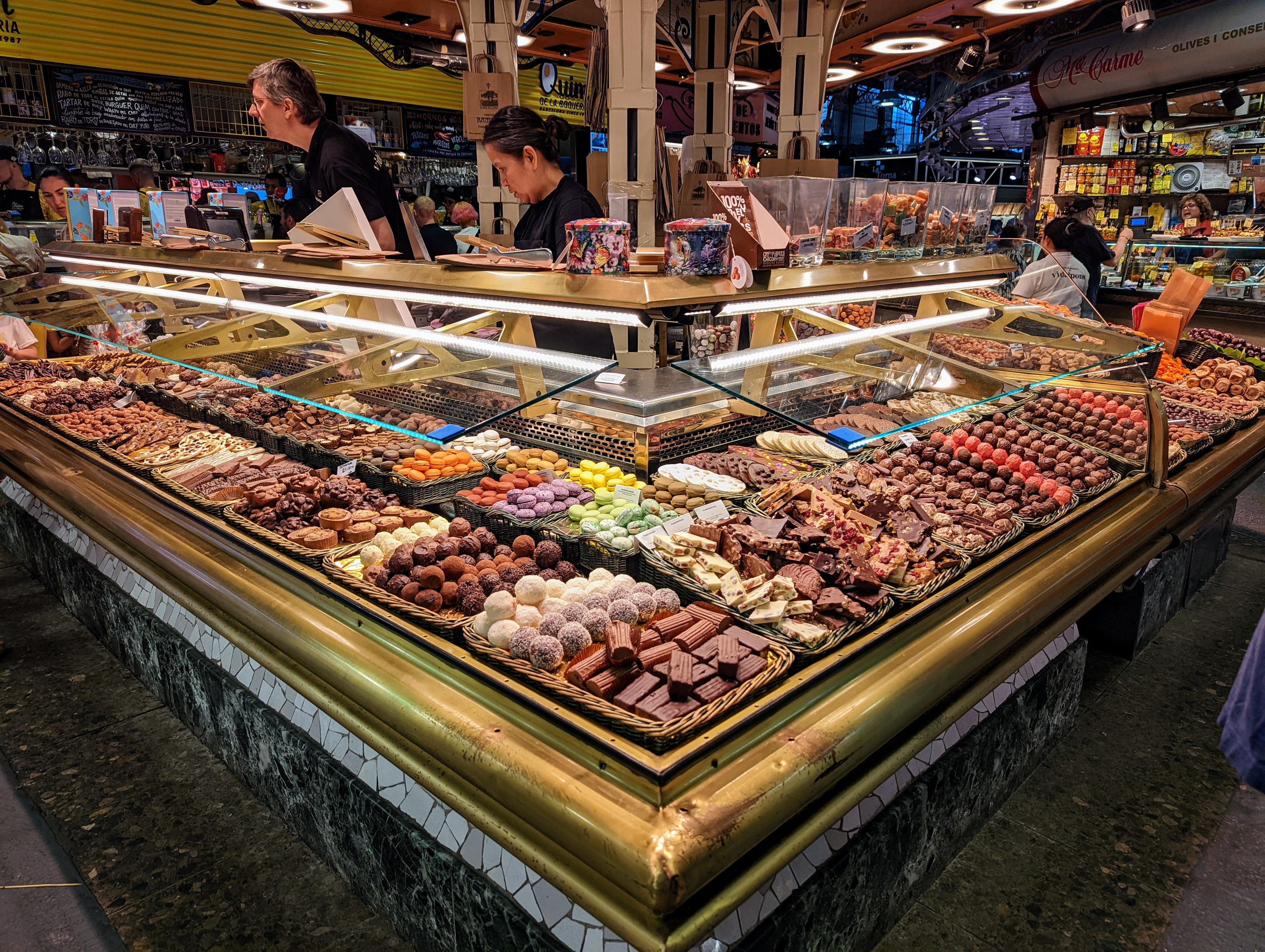 Barcelona’s markets are bustling centers for local commerce. One of the largest is Mercado de la Boqueria. Originally established in 1840, this market offers a huge selection of Spain’s renowned cured meats, cheeses, fish, fresh fruits and vegetables, nuts, and mouth-watering prepared foods.