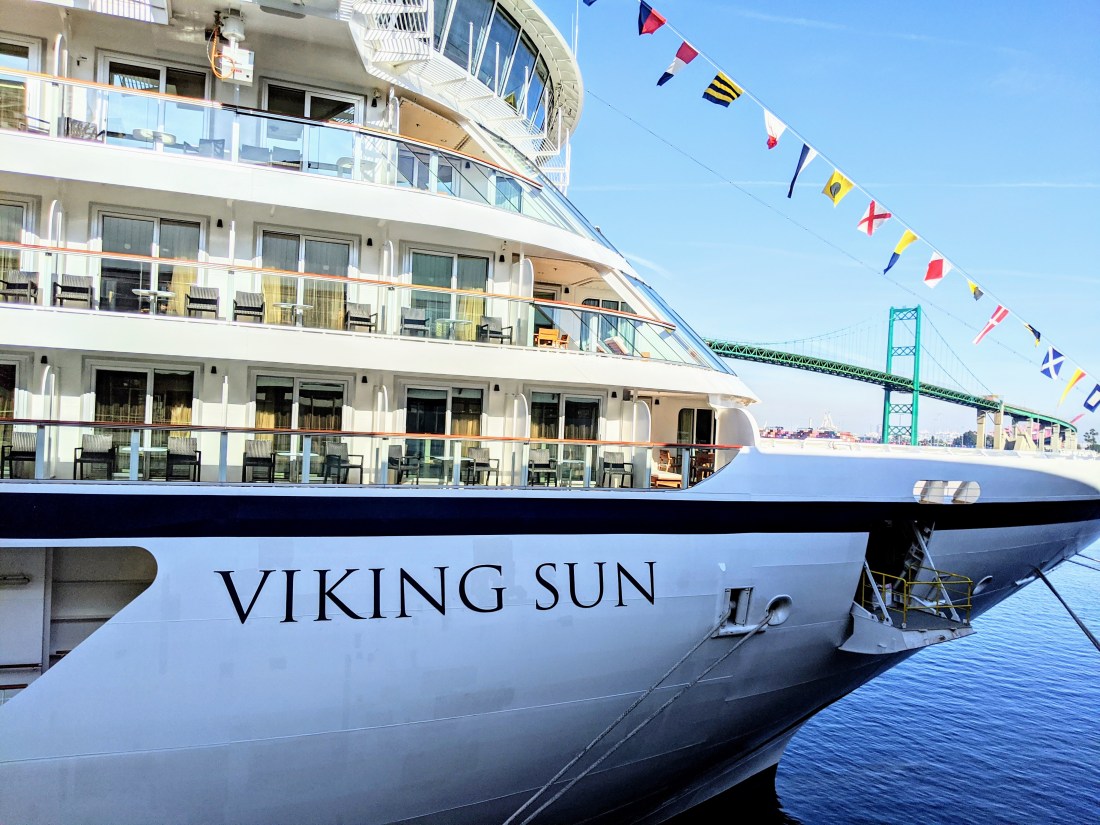 With a few hours til we arrive at our next port in Tahiti, we thought we’d share some highlights of the public areas of the Viking Sun, our home-away-from-home for the next four months. All Viking ocean ships are built in Italy and utilize exactly the same footprint. With a maximum of 930 passengers and a total weight of 48,000 tons, Viking ocean ships are considered small cruising ships. The maiden voyage for the Sun was in 2017, and vigilant maintenance and a passenger to crew ratio of 1.69:1 keep her “ship shape.”