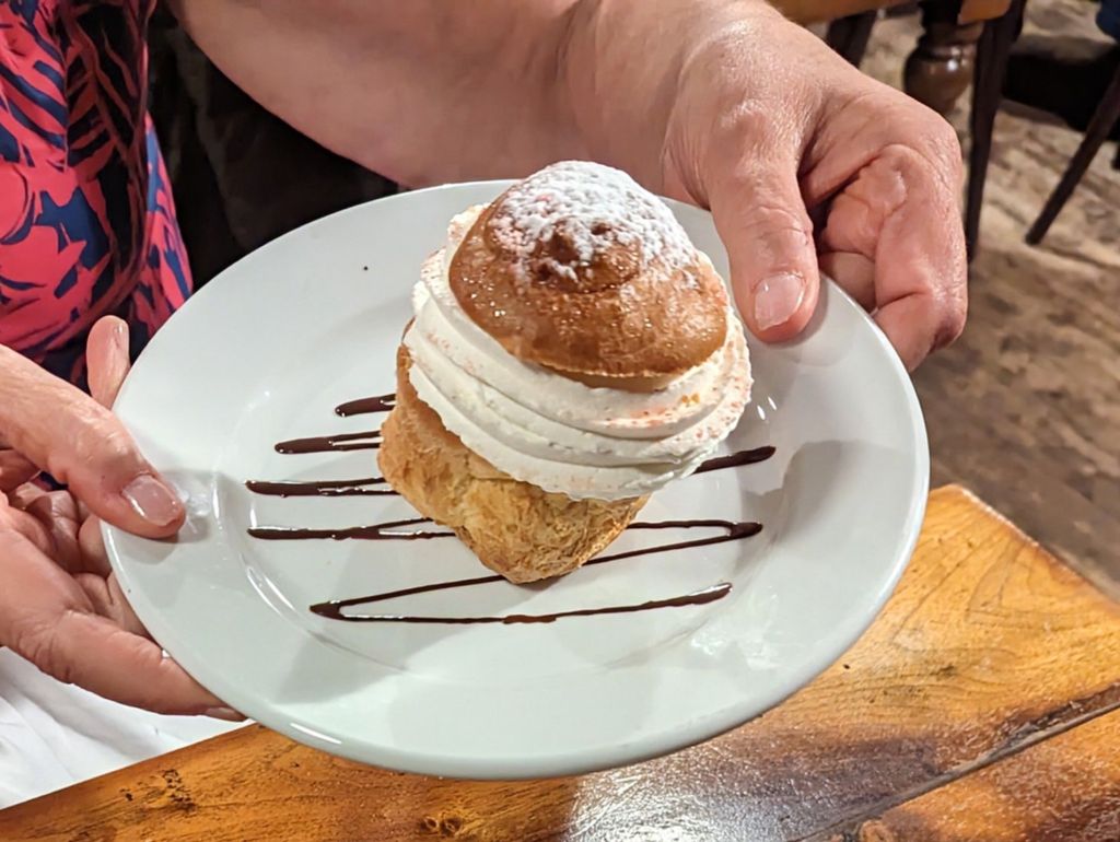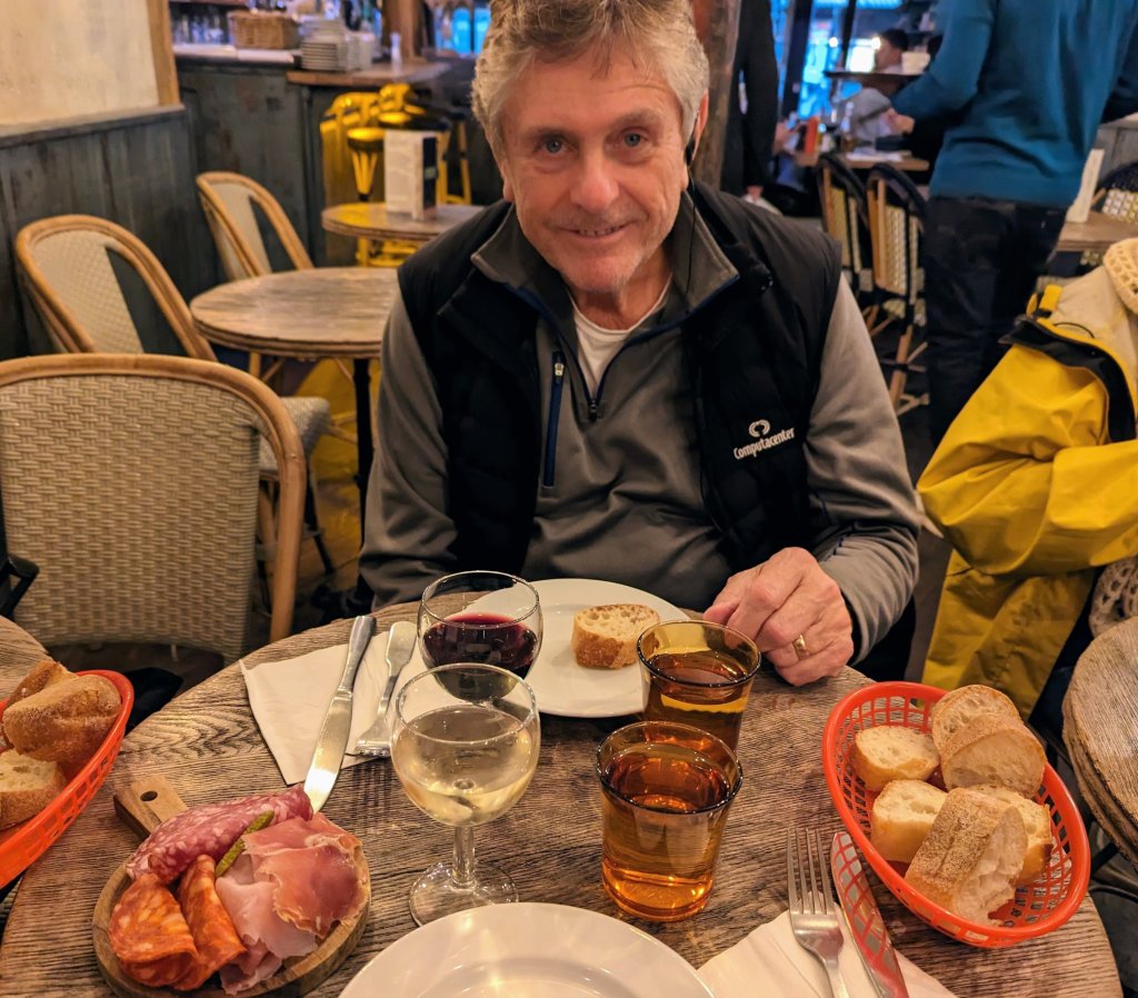 The hearty bouchon fare was surprisingly delicious. The affable service and French country decor combined to make us feel like we were dining in the home of old friends. Everything was delicious. And they even put a candle on Doug’s ice cream with warm chocolate sauce in celebration of his birthday.