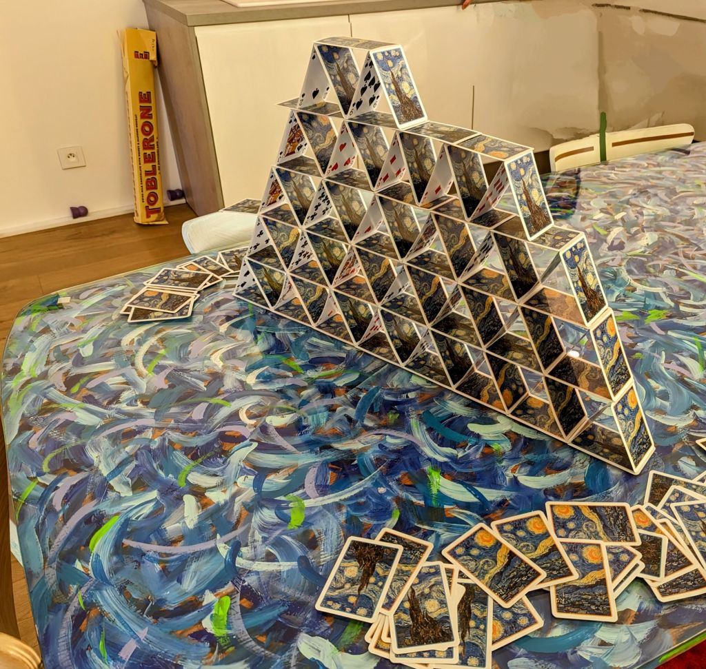 The gps took us here, but the umbrellas belong to the ice cream store, and the address is for the tobacco store. You have to look carefully for the blue door, and then ascend two flights of old, broken winding stairs. An unlikely venue to be sure.