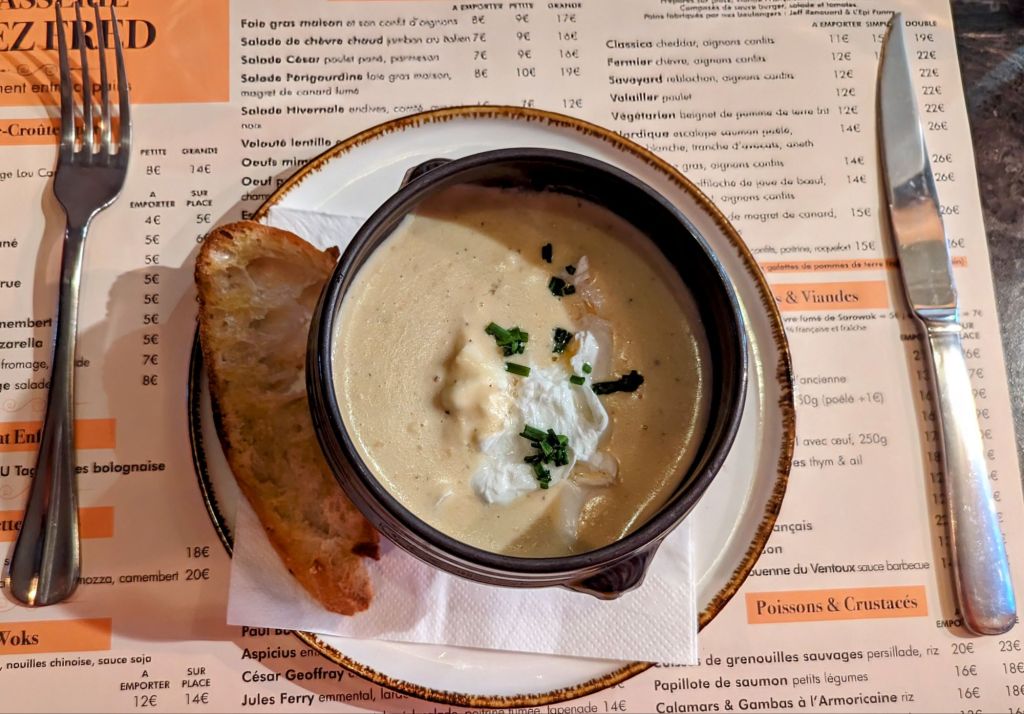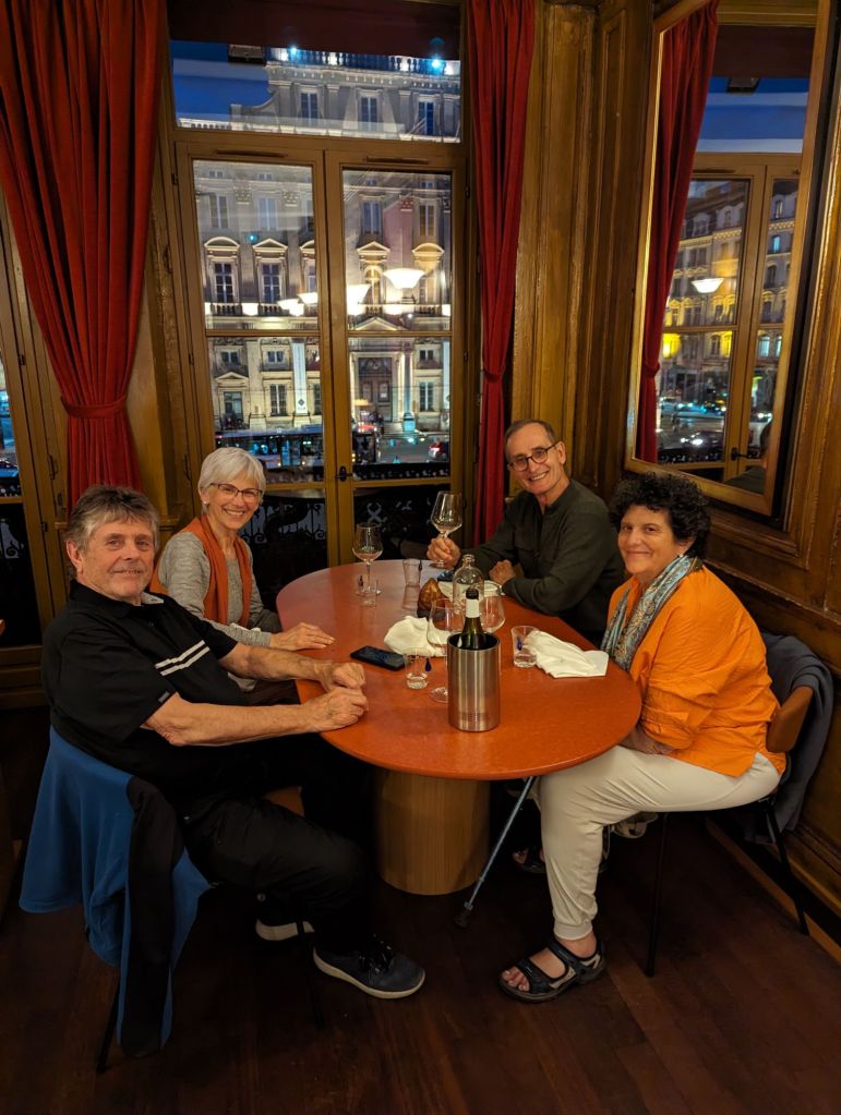 A little further into the city, we came to Rue Merciere, an inviting street teeming with people enjoying an outdoor lunch. The French take their lunch break seriously, and the cafes were buzzing. We found a welcoming spot and made ourselves at home for our first of many memorable meals in this “gastronomic center of Europe.”