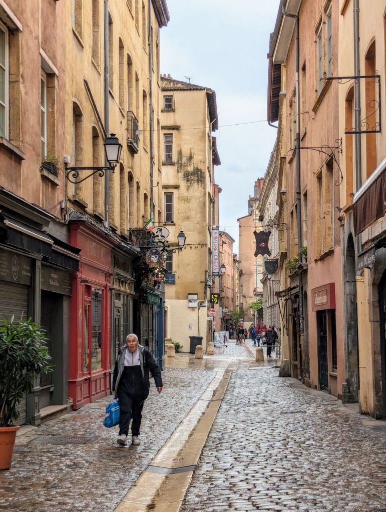 Vieux Lyon, the oldest neighborhood in Lyon, sits on the riverbanks of the Saone and reflects the spirit of early Lyon, where most workers were engaged in the silk industry. The area is remarkably well preserved with winding streets, hidden passageways (trabules…more on those later), traditional bouchon where the “Mothers of Lyon” honed their culinary skills (again, more on Lyon’s rich food history in a bit), trendy boutiques, museums, and LOTS of public art.