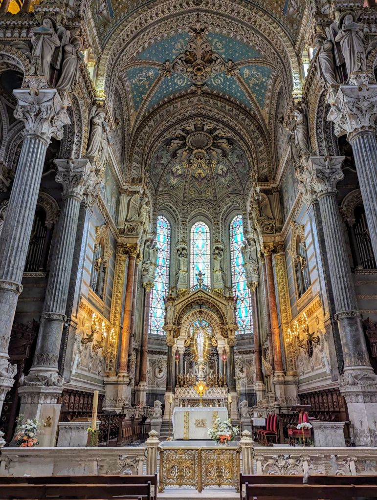 The weather improved tremendously the following day, so we decided to explore one of Lyon’s iconic monuments, the Basilique Notre-Dame de Fourviere. Located on the Fourviere hill, it provides a spectacular panorama of the city.