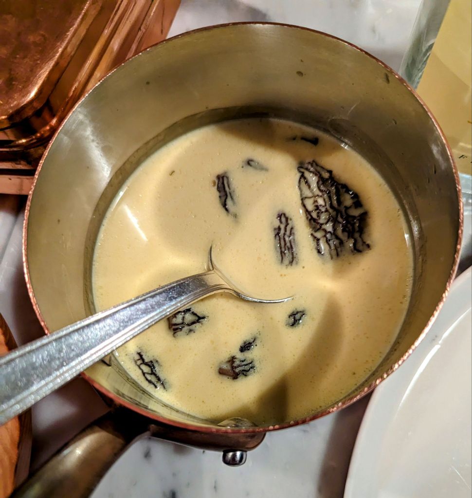 Cafe Terroir describes itself as a “unique French tradition gastronomic table,” and we quite agree. Young Chef Jean-Francois Tetedoi, whose father has a Michelin star, sources the finest local ingredients to offer fresh, organic fare. Our kind, capable server brought a palate cleanser of clear broth and an amuse bouche of chicken heart mousse. The escargot with a garlicky pesto was extraordinary. A specialty of the house is a whole rotisserie Bresse chicken for two artfully carved tableside and served with a velvety yellow wine sauce with morel mushrooms.