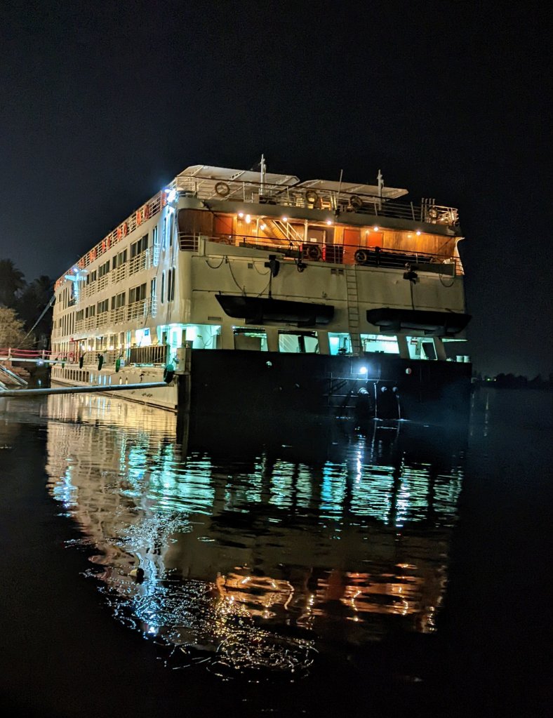 On the negative side, it has resulted in increased humidity, which we experienced first hand. It also reduced the amount of silt coming into the region, which had been a good natural fertilizer. The saddest outcome, in my opinion, was the relocation of about 140,000 Nubian residents. Although we were told that they were provided with compensation in the form of some land and money, the loss of their ancestral homes and communities was profound. Some moved to Sudan to start new lives while others stayed in Egypt and are trying to preserve their customs in different villages, which we had the opportunity to visit. I’ll talk more about that later.