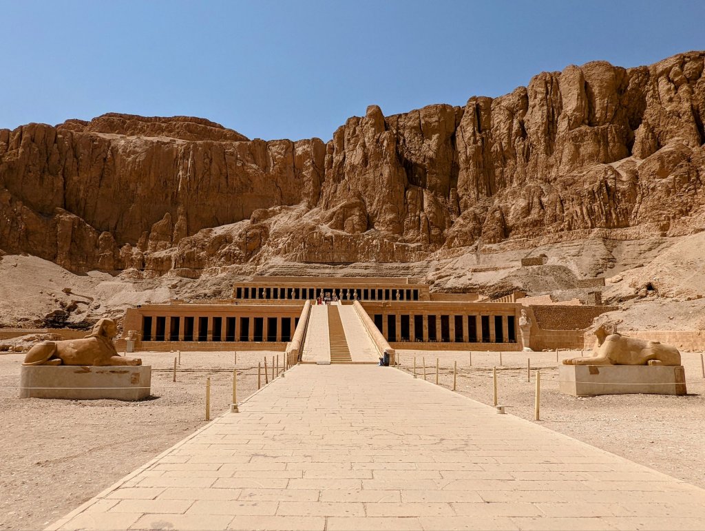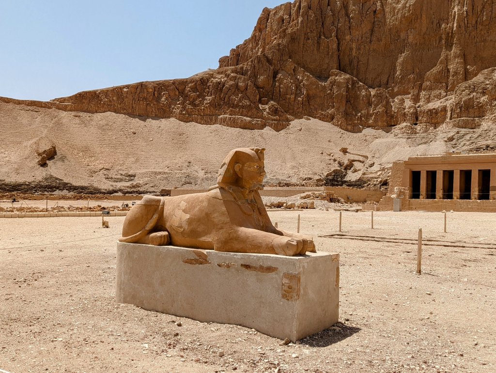 The Mortuary Temple Sphinx at the entrance The long way upStatues of the QueenThe well-guarded tomb
