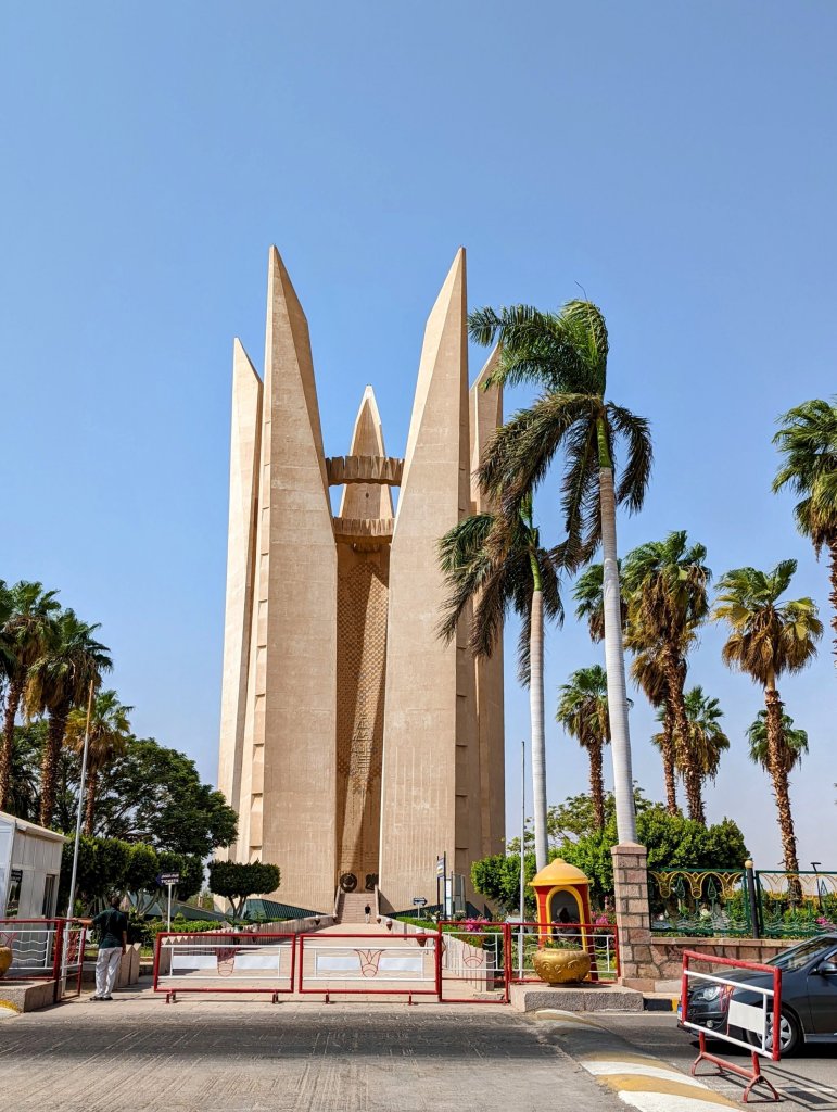 The dam is definitely impressive As we drove over the smaller dam, we could see the high towers dotting the skylineThis monument was built by the Soviets to commemorate the collaboration between them and Egypt. It’s supposed to depict the lotus flower and gears. A Soviet eagle is carved into the granite inside the monument.