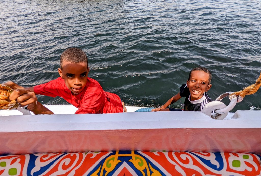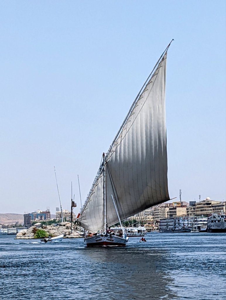 In the afternoon, we enjoyed a sail on a traditional falucca boat. The boats make a striking silhouette along the Nile with their unique and beautiful sails, and the sailors pass their trade down through generations.