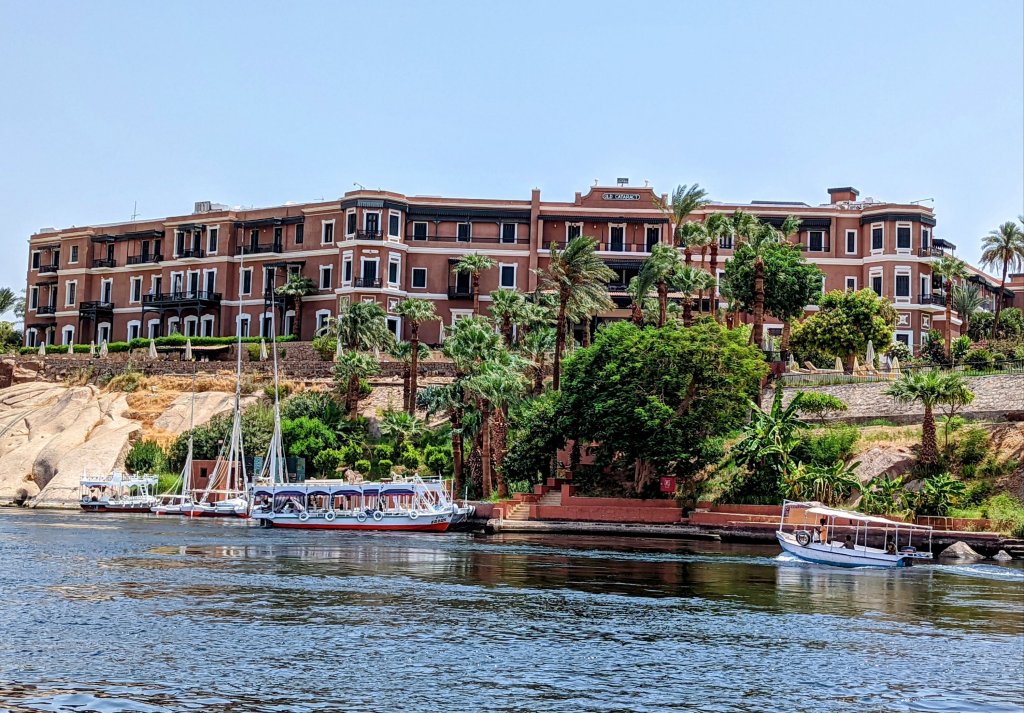 Our young skipperThese unique boats are a symbol of EgyptBeautiful against the Aswan coastline We even saw some camels along the river bank.The Old Cataract Hotel where it is said that Agatha Christie stayed while writing Death on the Nile A temple masoleum A desert archwayWe even had a couple of kayakers hitch a ride for a while