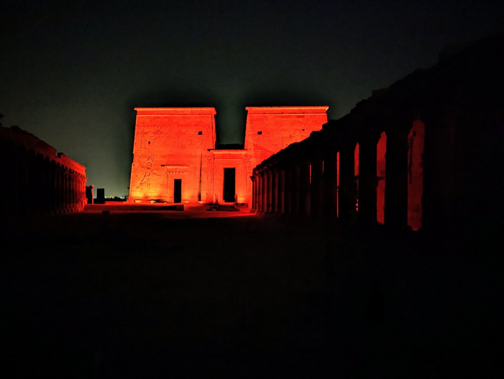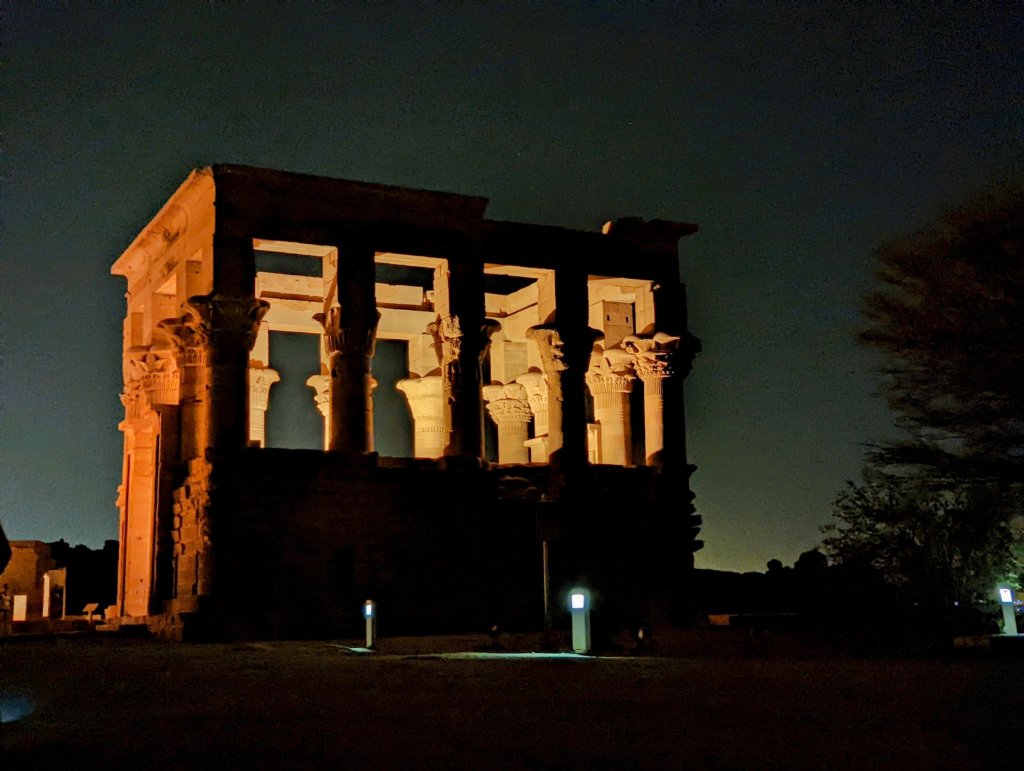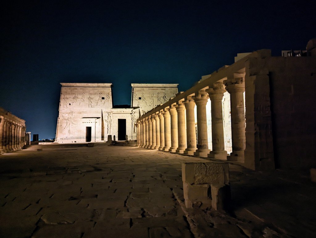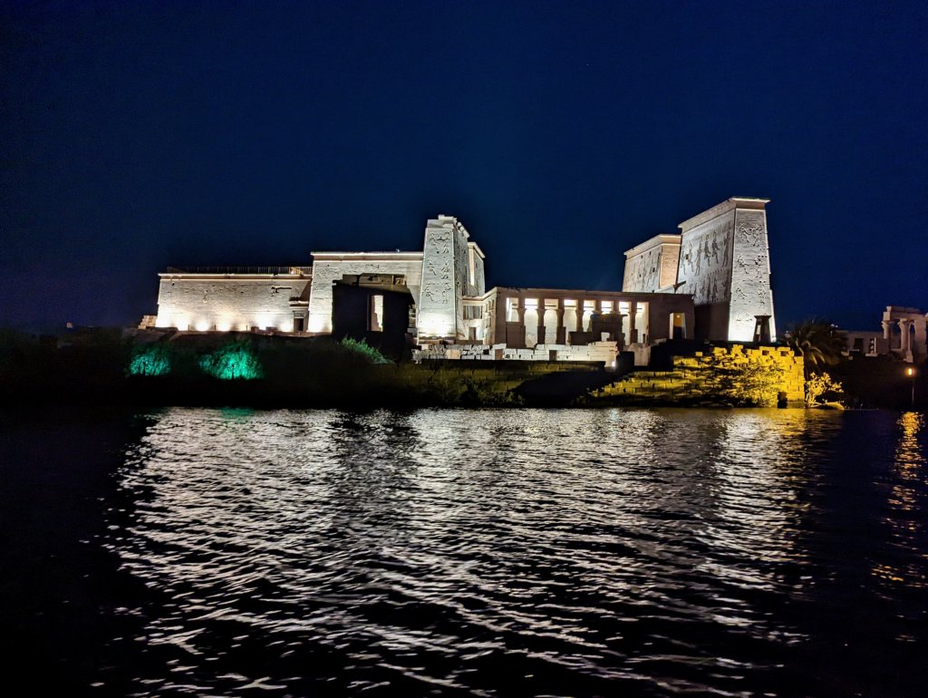 Later that evening we visited Agikia Island located in the Old Aswan Dam reservoir. There we saw the ancient temple dedicated to goddess Isis. This historic structure is part of a complex of temples called Philae. It too was relocated because of the dams. When the Old Aswan Dam was built, the complex was flooded or completely under water for months at a time. As part of the UNESCO Nubia Campaign, Philae was disassembled and moved to Agikia Island. It took workers almost 20 years to deconstruct and relocate the temple complex. We stopped by the following morning, and it was just as beautiful! We also had a chance to swing by the Nubian market where the clothes were far more beautiful than what we’ve seen so far. There’s much more gold and bling!
