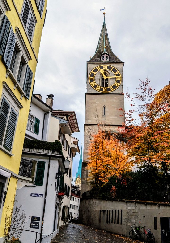 St. Peter’s Church with Fraumunster’s steeple in the background