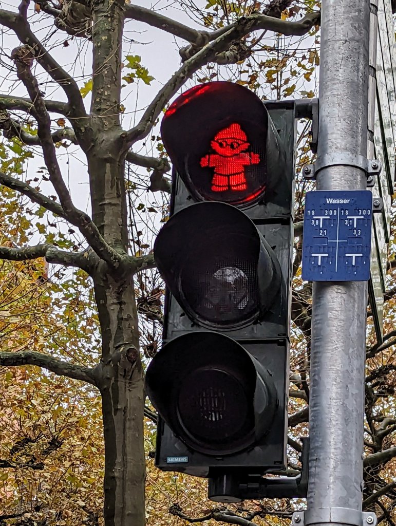 Mainz has had its share of tragedy and triumph, but it also has a sense of humor. This is reflected on its pedestrian traffic lights, on which a charming little guy named Det tells walkers to go or wait. Det is one of 6 beloved TV characters called Mainzelmannchen. The name and concept is from a kind of gnome from the folklore of nearby Cologne. They normally appear in brief skits during German TV between the show and commercials.