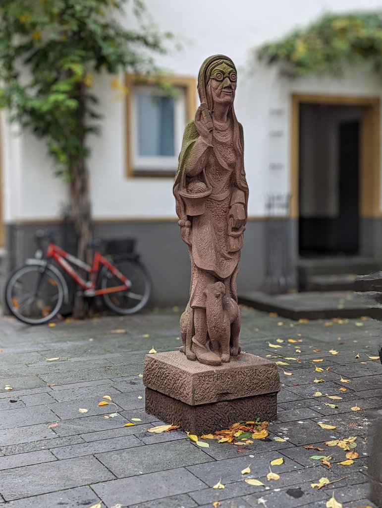 The ‘Cat Lady of Koblenz” was a well-known person in 1930s Koblenz as she made her way around town selling peppermints to the gents heading home after a night of drinking beer. The men would buy the mints to sweeten their breath, and Annemarie would use the cash to feed homeless dogs and cats. A statue was erected in her honor upon her death in 1940. The idea was to recognize the well -known, not necessarily the famous.