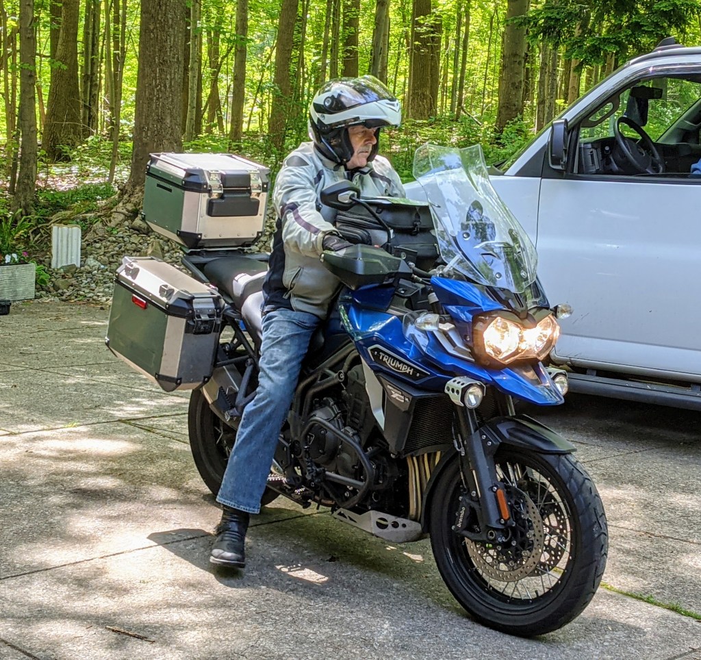 Doug leaving for solo moto trip to CaliforniaMocha LatteGrandkids Lewi, Lona, and Otto